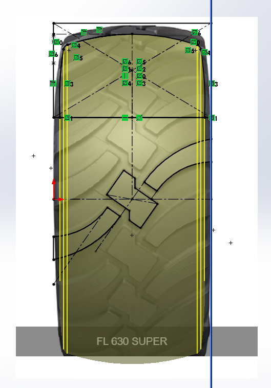 J'ai pas mal utilisé Solidworks (pas autant que d'autres ici), mais maintenant que je maîtrise d'avantage CREO, pour faire des pneus, il y a une fonction beaucoup plus rapide : pli toroïdal. Je ne vous ferais pas de tuto dessus parce que je ne l'ai que très peu utilisé (juste pour tester). Mais dans l'idée, vous dessinez votre bande de roulement a plat, et ensuite vous lui dites quel profil elle doit épouser et c'est fini ! Tadam ! Non j'exagère un peu, il faut retailler un peu les crans sur les flancs et mettre les marquages, mais ca reste plus simple