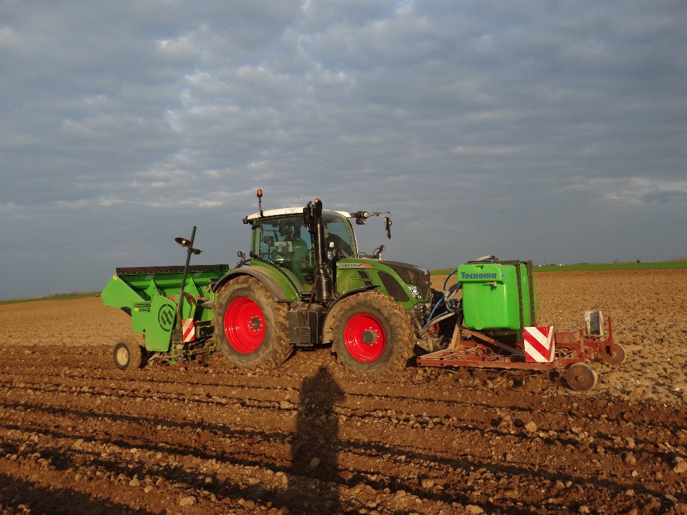 Un 927 avec le décompacteur et un 939 avec la fraise - butteuse - planteuse Grimme GF90-4 et GL430