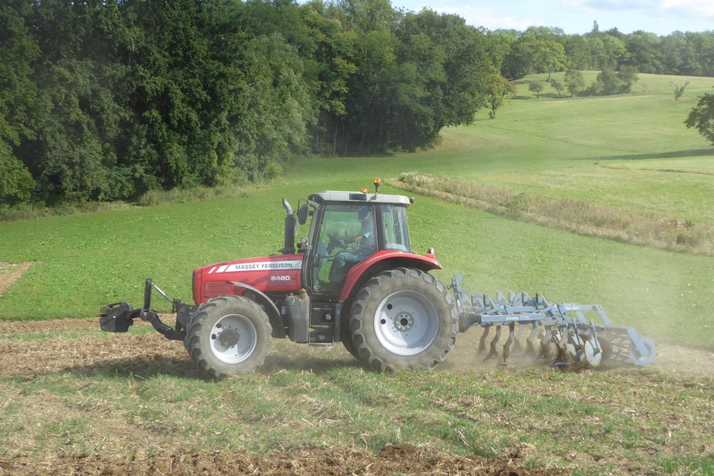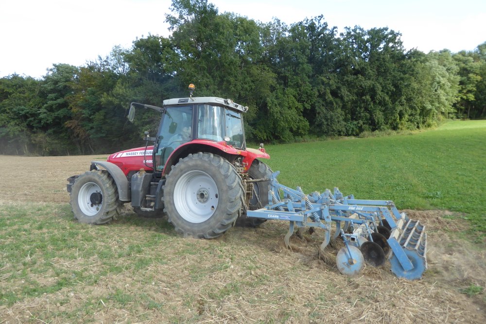 Voici des photos d'un chantier de déchaumage dans le Finistère avec un tracteur de démonstration un JD 8370rt sur un déchaumeur Lemken Rubin 10 de 7 mètres: