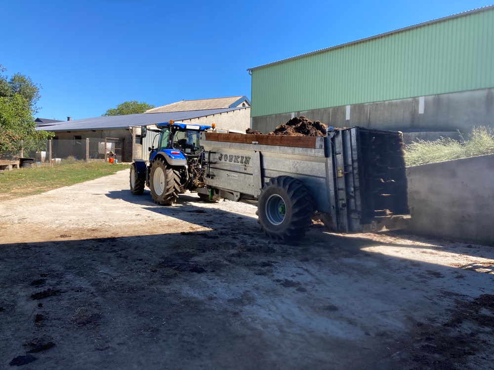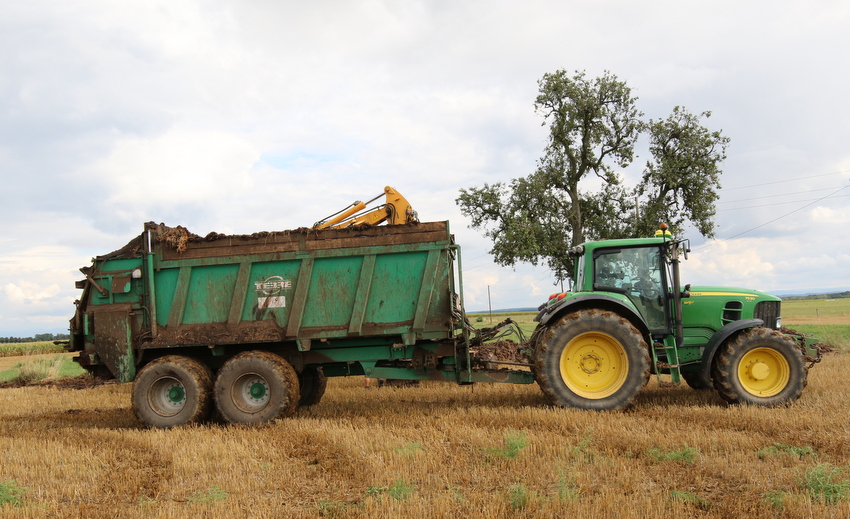 Comme la ferme est située sur le plateau du Neubourg c'est très plat donc le 6190 R est à l'aise sur la tonne . Après la moisson c'est même le 6155 R qui le fait.