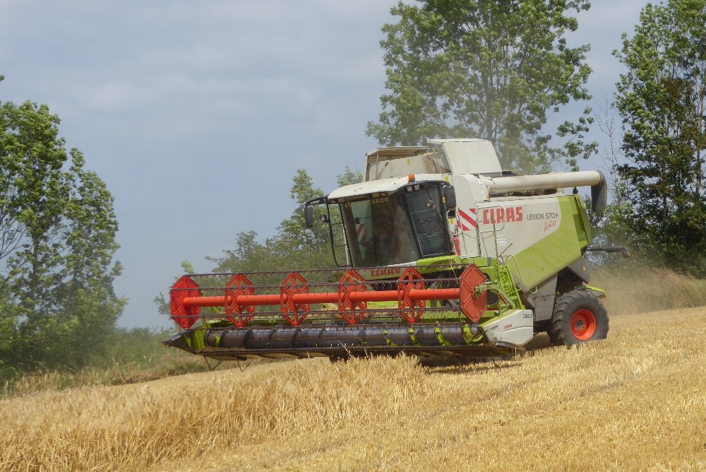 Vue de loin aujourd'hui du coté de Guignicourt (02), ma première moissonneuse en action pour la saison 2023.