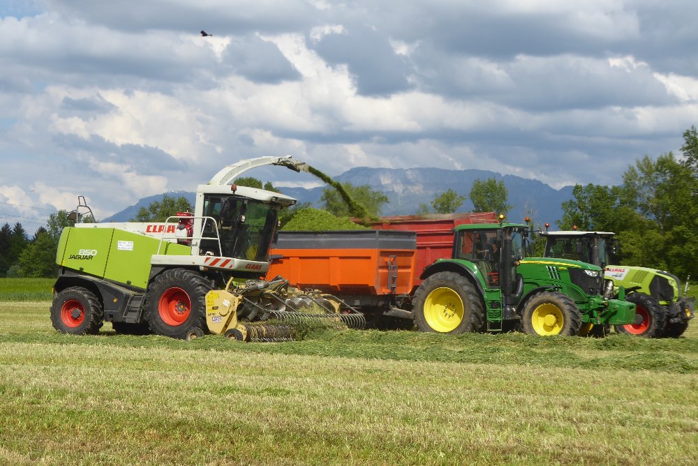 #7Bonjour. Cette après-midi, ensilage d'herbe destiné à l'alimentation de vaches pour la viande. Ensileuse CLAAS JAGUAR 850 avec pick-up IDASS, et trois ensembles tracteurs / bennes .