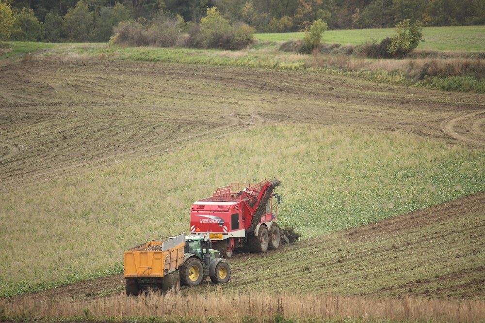 Avant dernier chantier de semis, avec pour commencer à la préparation de terre, un Religieux Condor 8m, attelé à un Claas Xerion 4500 :