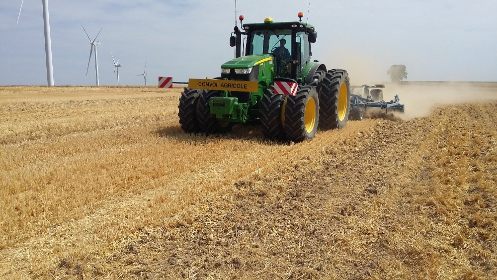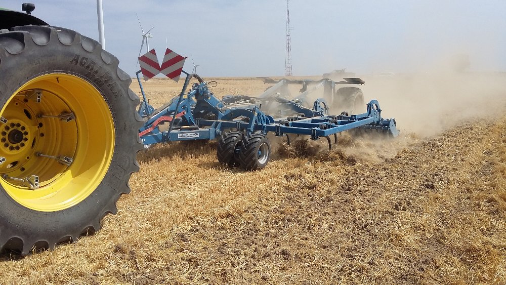 #39Déchaumage avec le 826 S4 et le Rebell Profiline de 6 mètres, sur les 8-9 premiers centimètres derrière les blés tendre , avant le passage du strip till et du monograine pour les semis de colza.