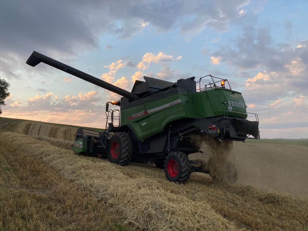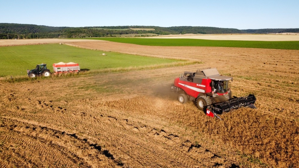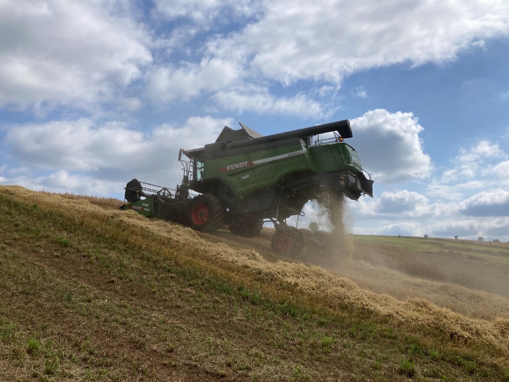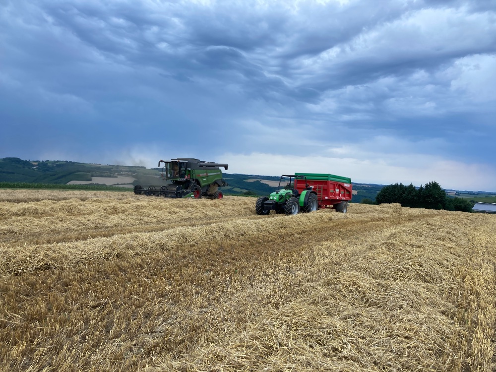 Blé dur bio moissonné par une ancienne très en forme dans la Drôme.