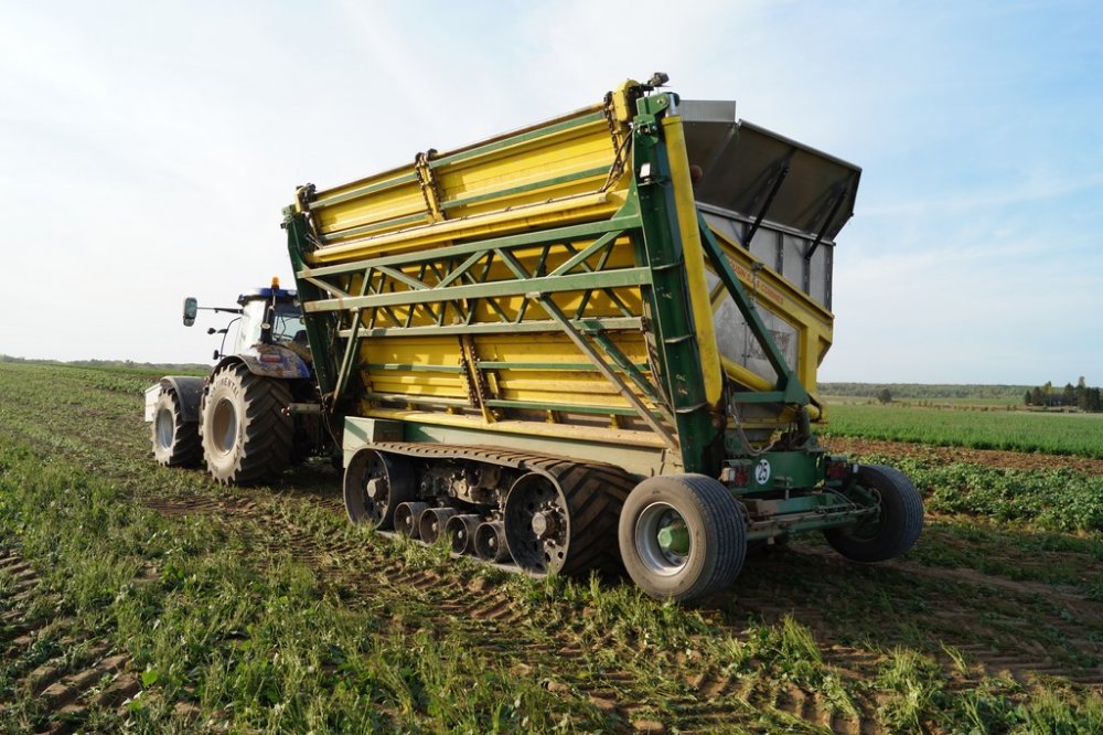 Récolte de haricots avec une superbe remorque élévatrice ,merci aux chauffeurs pour leur sympathie
