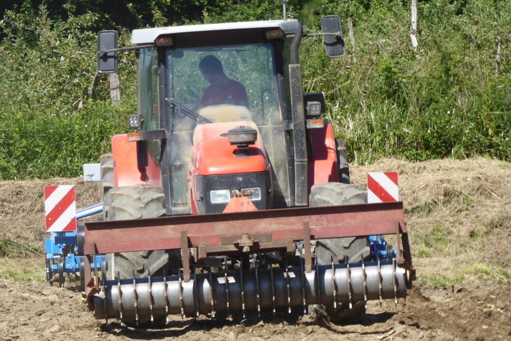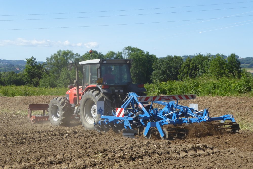 Bonjour. Préparation de terre après une première coupe, pour implanter un mais ou un soja. Pour cela, un SAME SILVER 105 avec un rouleau frontal faisant office non-seulement de rouleau bien sur, mais aussi de contrepoids pour le préparateur CARRE PENTERRA très récent.