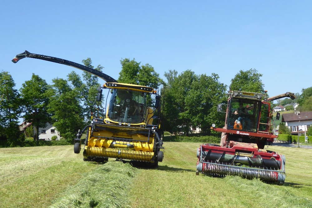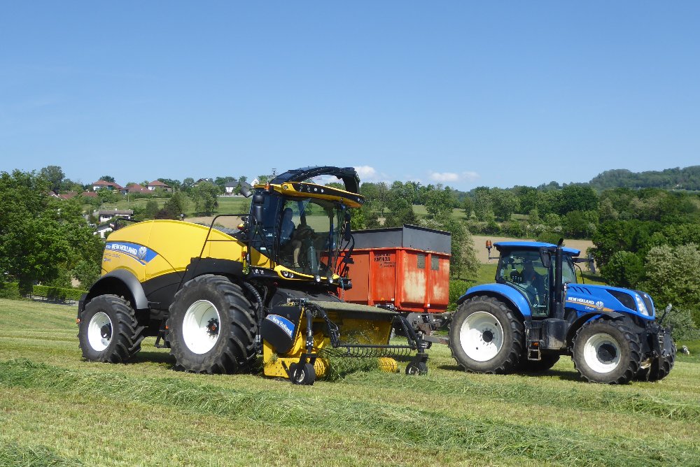 Bonjour. Voici un chantier d'ensilage d'herbe, chose pas courante en Haute - Savoie par rapport à toutes les AOP / AOC. L'entreprise est venu avec deux machines: