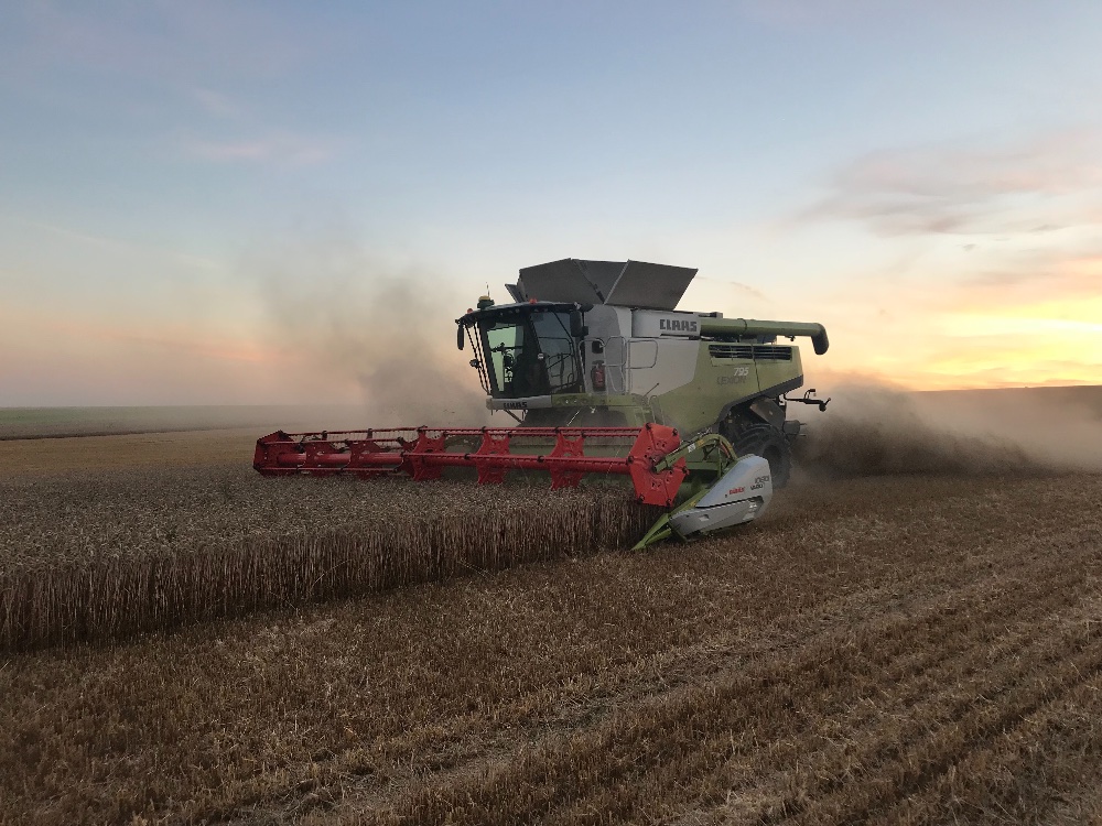 Les orges d’hiver, les Colzas, les blés sont récoltés! Rythme soutenu et régulier pour la Lexion dans pause depuis le 2 juillet!