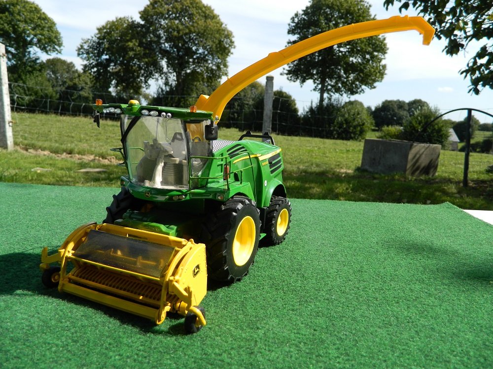 #1voici quelques photos de l'ensileuse Britains que j'ais modifier donc j'ais rajouté rambarde,feu de travail,changement des feu arrière,rajout de rétroviseur et gyrophare,peinture pick up et goulotte ,extincteur peint et changement échappement pour un chromé reste encors quelque détail a ajouté mais elle déjà plus belle allure comme ça