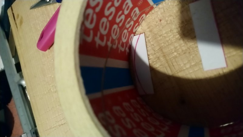Je me suis dessiné sur une plaque un gabarit avec ce qui me traînait sous la main, un rouleau de papier cache, comme ça j'ai les deux mêmes courbes.