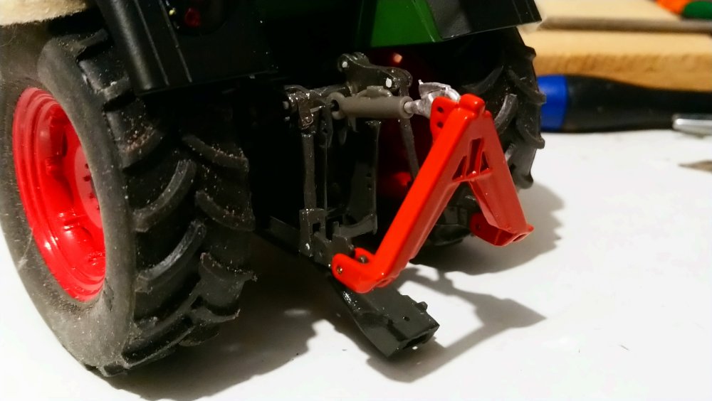 Bon j'avoue, c'était aussi plus simple pour moi de faire un petit vérin plutôt que le système de stabilisateur d'origine Fendt qui est assez compliqué en vrai et du coup à reproduire.
