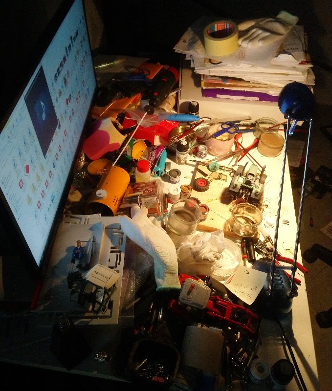 Je travaille tout cela juste devant la chaudière a bois qui carbure dans mon dos, il fait 28° dans la pièce ça n'aide probablement pas mais bon au moins je peux salir un peu plus que dans le bureau et le bruit du compresseur utilisé par la suite est moins gênant.