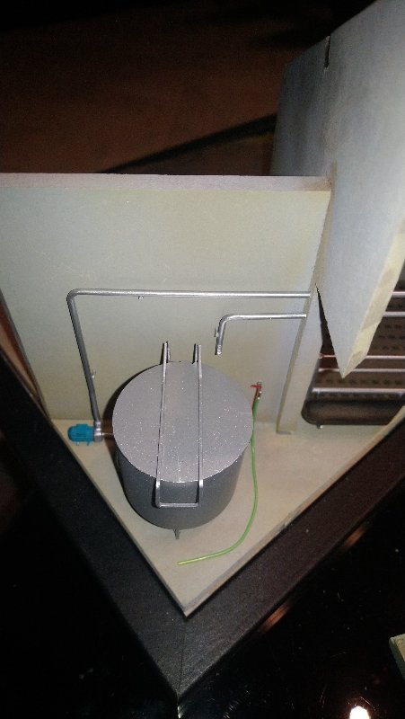 Pour les tuyaux d'alimentation de la salle d'élevage, il s'agit de PVC de Ø2mm tordu a la pince sur lesquels j'ai collé des carrés de 1mm pour le scellement dans le mur.