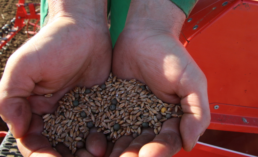 #335JOHN DEERE 6125 R + KVERNELAND LS 95 JOHN DEERE 6125 R + KUHN COMBILINER SITERA 3000 Semis de mélange de céréales pour les bovins