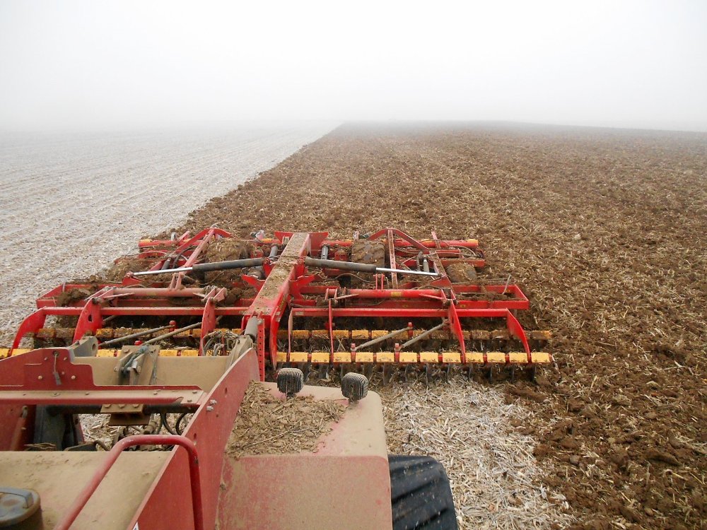 Fin des semis de blé dur en gironde avec un Mt 865E, kuhn aéro et herse plate Durou, l'ensemble évoluant en 12 m a 16 km/h, pour un débit de chantier réel de 12 ha/h et une consommation moyenne de 7l/ha