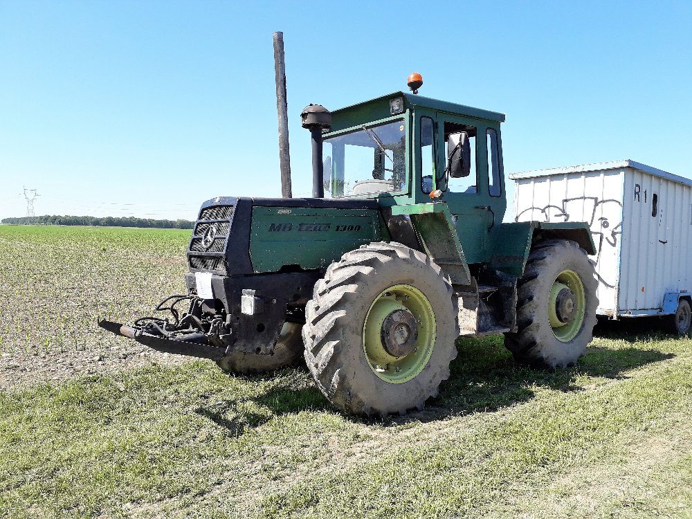 Un Mercedes Ben Unimog 1850 utilisé en automoteur de pulvérisation (pulvé Nodet)