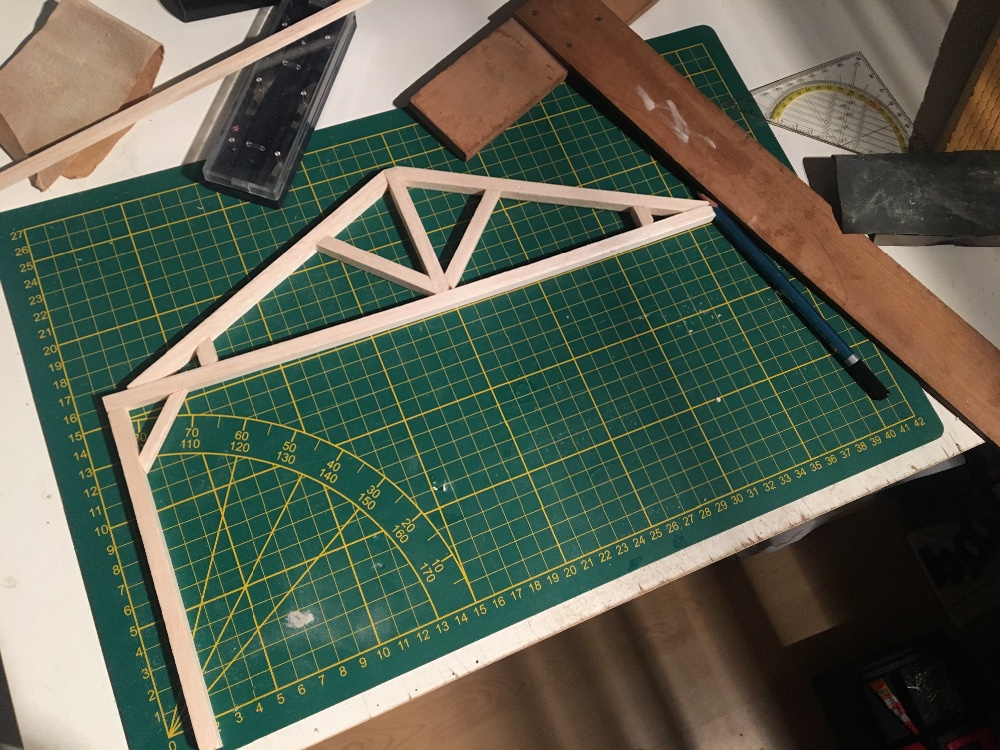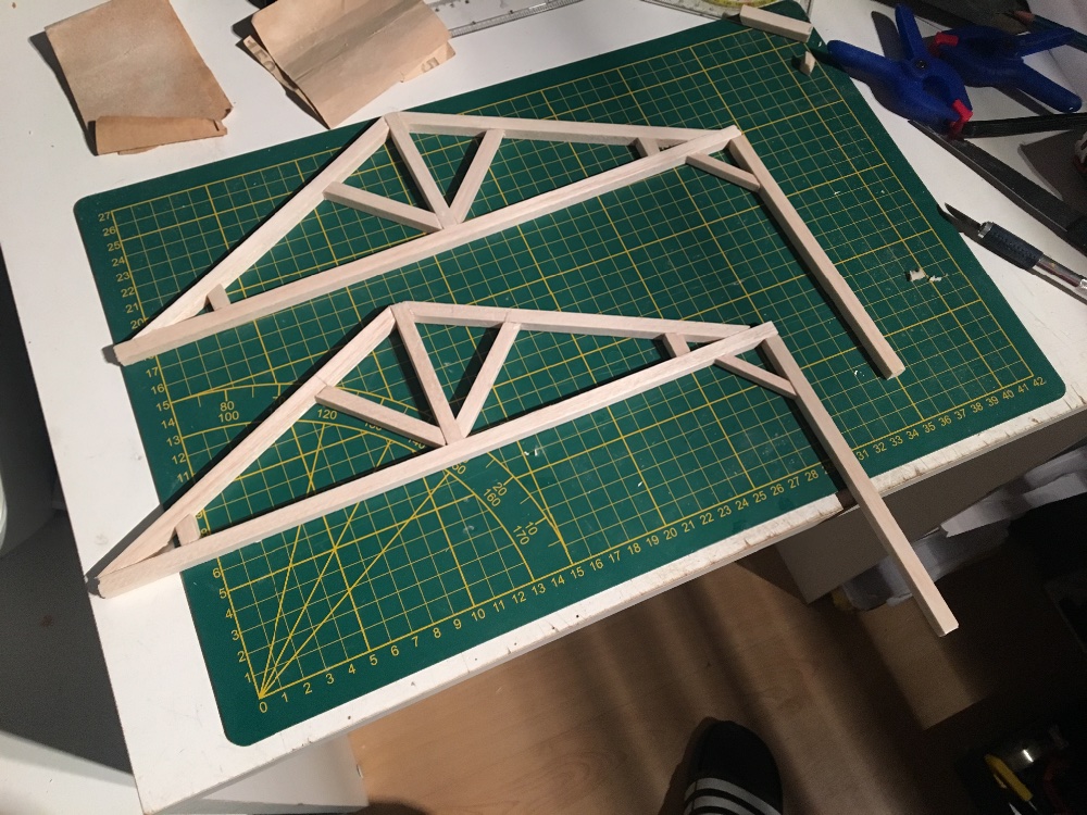 Pour la suite, je me suis attaqué à la charpente.Pour la concevoir j’ai cherché sur le forum les plans de charpentes que certains membres ont déposé.