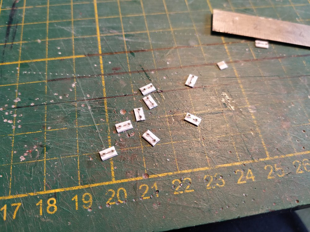 Maintenant pour refaire cette façade avec tous les rivets, j'ai pris une chute de plastique de 0.3mm, que j'ai embouti avec une pointe pour faire apparaitre des bourrelets. Je n'ai pas eu le courage d'Antoine pour faire des trous et placer des petits bouts de ronds..