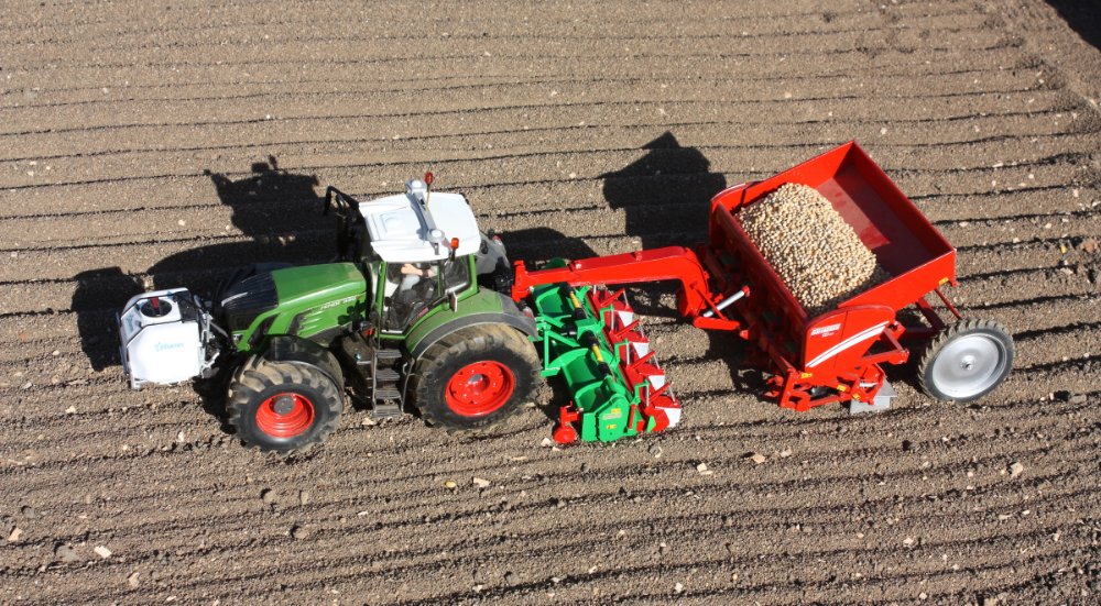 Fendt 939 avec fraise 4 rangs Baselier combinée à une planteuse Gimme GB430