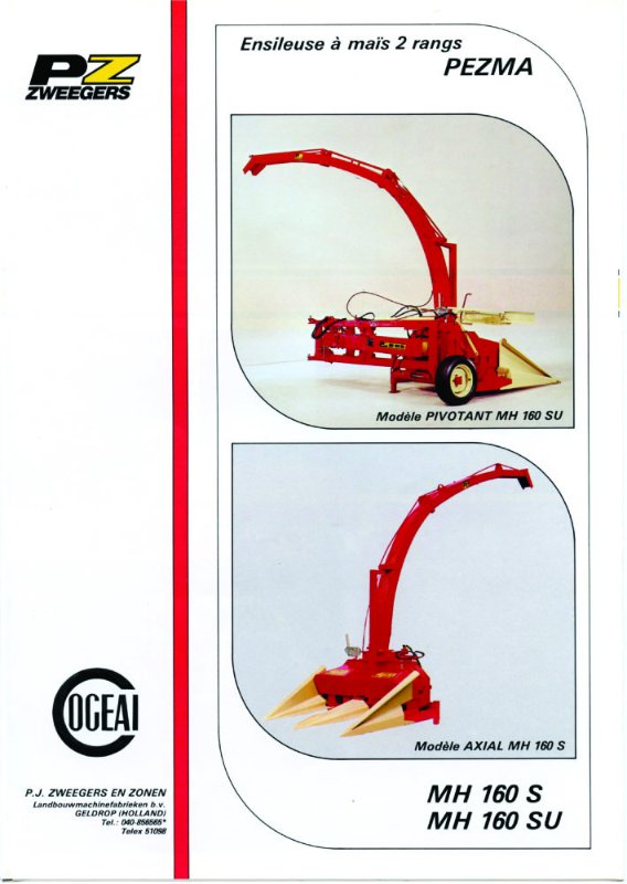On continue avec la gamme des ensileuses à maïs. Au passage des années 60 à 70, naît une petite ensileuse bizarre, la PEZMA MH80, qui va révolutionner (une fois de plus) le marché. Jusque là n'existait pratiquement que des machines trainées ou des automotrices lourdes, encombrantes et relativement fragile avec leurs chaînes. La Pezma avec ses deux tambours d'amenage et son petit volant hacheur a transformé la récolte du maïs fourrage. Légère, puissante et très solide, elle se contentait de tracteurs légers. Ses caractéristiques lui permettait de passer partout quel que soit les conditions de terrains souvent détrempés au moment de la récolte. Elle sera suivi par la suite par des modèles à 2,3 et même 4 rangs adaptables à l'avant ou à l'arrière du tracteur avec poste de conduite inversé. Une nouvelle version MH80S verra le jour dans les années 80 ainsi qu'un modèle à 2 rangs : MH160SU qui pouvait être utilisé aussi bien en position arrière ou latérale.