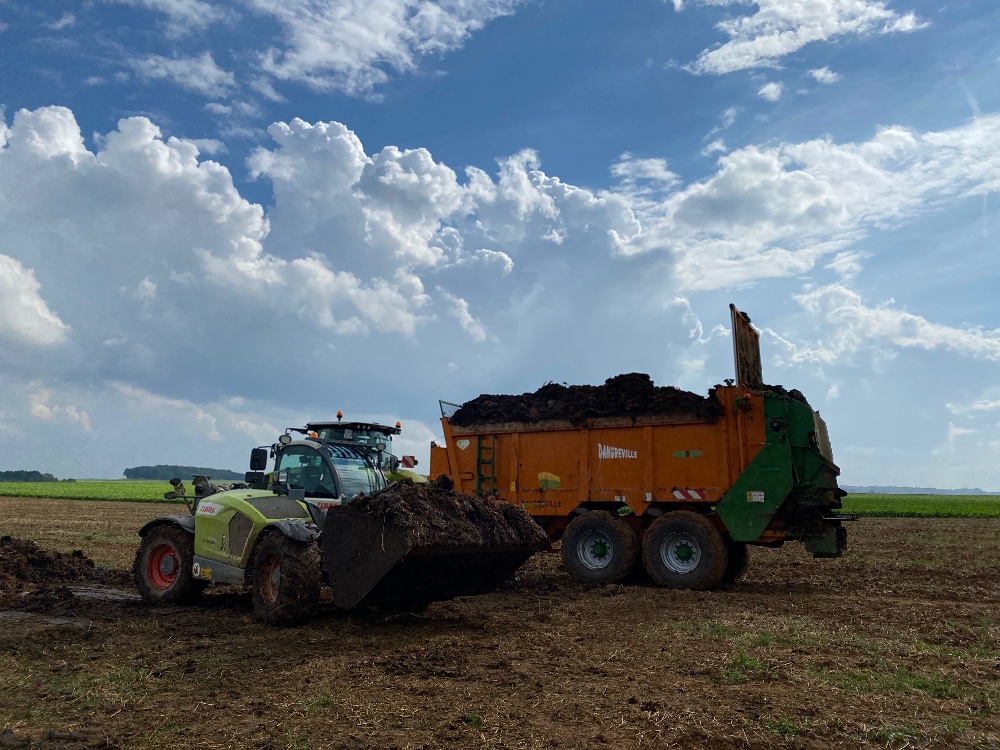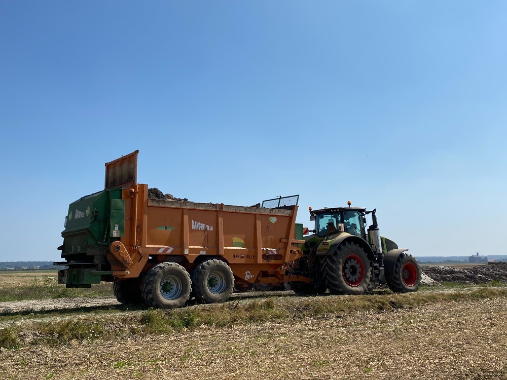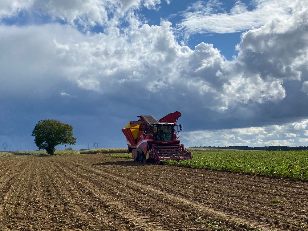Déchaumage des betteraves, et dernier épandage de la campagne en ce début octobre. Mise en route timide dans le tournesol, ça devrait reprendre semaine prochaine.
