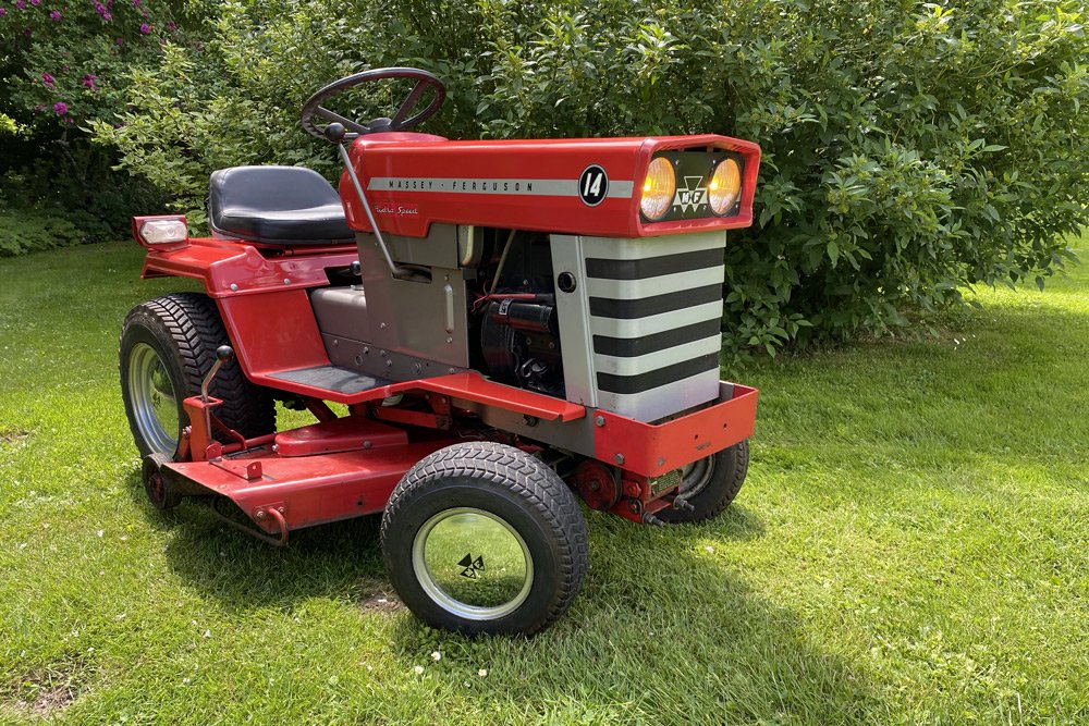 Il dispose d'un monocylindre Kohler de 14 chevaux. Seul le MF 16 de 16 chevaux le dépasse dans cette gamme. Les MF 14 et MF 16 sont des tracteurs de jardin et ont une conception robuste, surdimensionnée par rapport aux modèles inférieurs. On le voit d'ailleurs à la taille des ponts et des supports de bras du relevage arrière, en option.