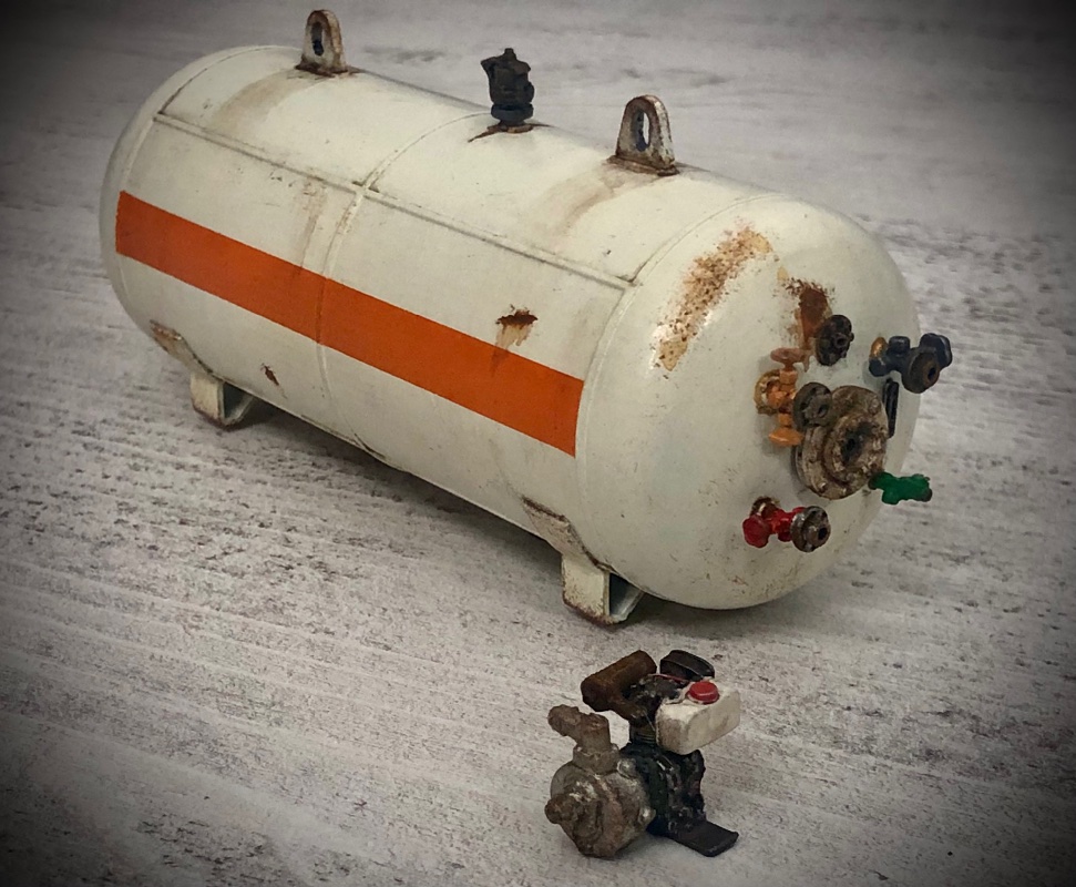 Vous vous souvenez de la cuve d Ammoniac anhydre imprimée en 3D et accessoirisée en scratch. Elle vient de prendre des couleurs et de l’âge 🤣