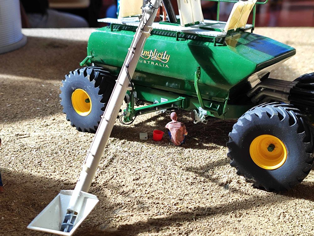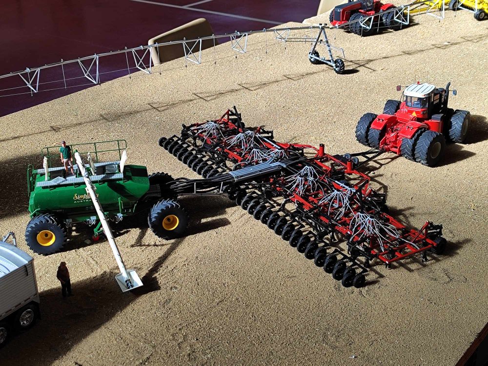 Il s'agit donc d'une rampe de semis Concord (Groupe case IH à l'époque) de modèle ATX6012, avec un aircart Simplicity Australia de 17000 L modifié. Le semoir faisait donc 60ft ou 18m de large.