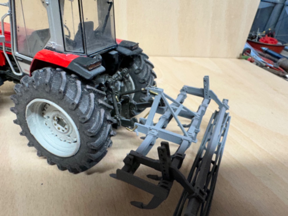 #1though i would share my latest build with you, printed bonnet and wheel, from a guy in holland, uh 2000 series chassis with the front axel moved forward to correct wheelbase ,cab and floor is from a uh mf3080 , the arches have been extended as per the real ones, front and rear linkages from farmodels.nl ,printed my own a frame and weights