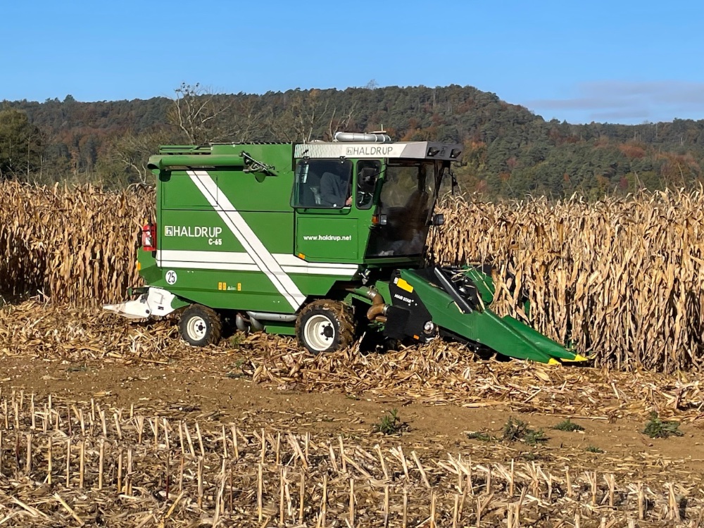 Quelques photos de ces 2 derniers jours ! Arrivée de la moiss-bat qui va récolter les essais variétés Maïs grain, et début de rodage pour le Puma !