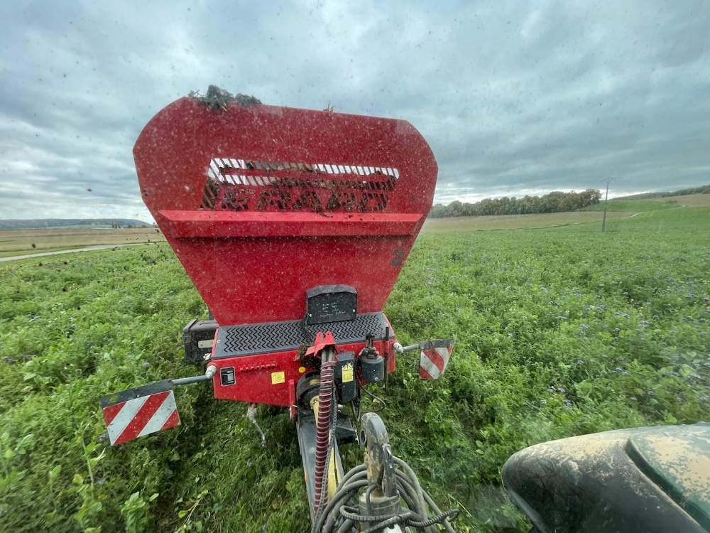 Quelques photos encore ! Récolte des essais par la coop, un peu de fumier sur les couverts avant la pluie, et désherbage des céréales !