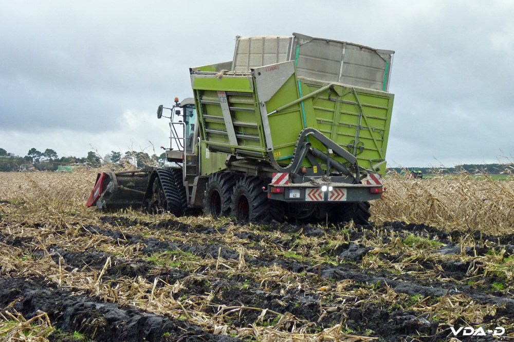 D'abord dans le choix du matériel, il y avait moyen de trouver des chenilles pour l'ensileuse, mais impossible de faire rentrer des tracteurs conventionnels et des bennes pour la suivre.