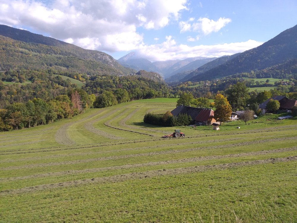 Bonjour. Hier soir, dans de l'herbe épaisse et pleine de taupinières ( d'où la coupe haute sur certains passages ), voici un FENDT FARMER 305 LS avec autochargeuse et coupe à tambours SUPERTINO.