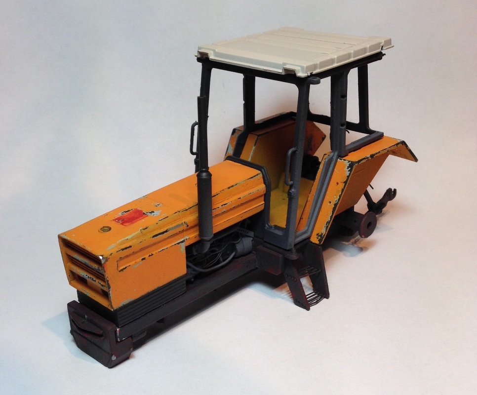Le pont avant reçoit le même traitement que le châssis avec la même teinte, mais avec plus d'usure.