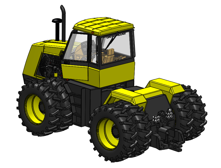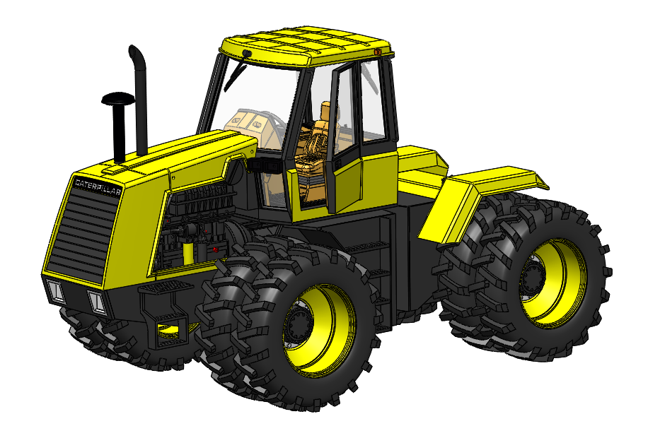Déjà au moment de concevoir le challenger 65, le prototype de caterpillar articulé m'avait tapé dans l'oeil mais j'en étais resté là car mon objectif c'était le chenillard à l'époque. Ce fameux prototype c'était un projet de Caterpillar (années 80 ) de venir concurrencer les autres fabricants de tracteur et de répondre à une demande forte de tracteur puissants en proposant comme tant d'autres une gamme de tracteurs articulés. Ils avaient prévu d'introduire un premier modèle de 270 cv avec un moteur cat 3306 ... ET MAIS C'EST LE MEME QUE SUR LE CHALLENGER 65 DITES DONC ! Et oui ça fait une grosse base de départ un moteur comme ça et en plus le challenger 65 avait récupéré le design de ce prototype. MERVEILLEUX ! Ne me restant plus que des pièces de Caterpillar en stock, vous comprendrez pourquoi j'ai sauté aussi vite sur ce projet.