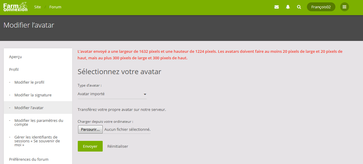 #5Tu choisis bien "Avatar importer" et après "parcourir " puis envoyer ?
