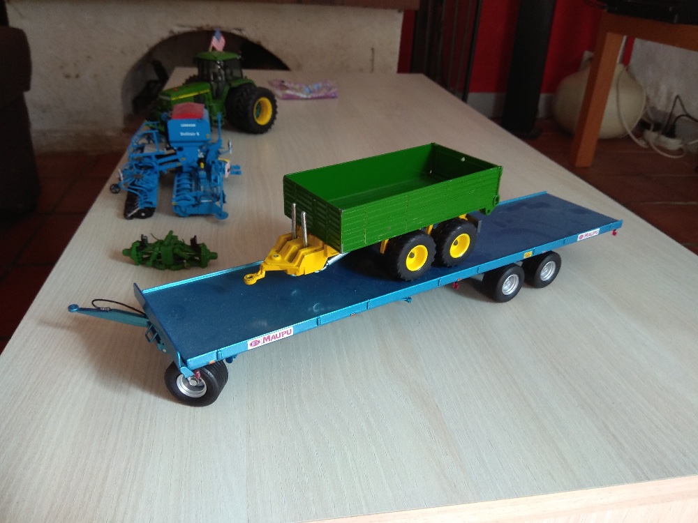 John Deere 9420 1/32 sur base de 9420T ERTL et 9330 Britains, problèmes de traces de colles sur les carreaux et autocollants a faire. 200€. Vendu