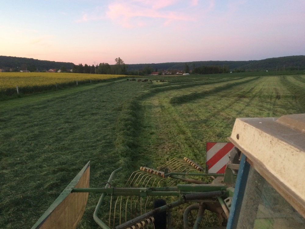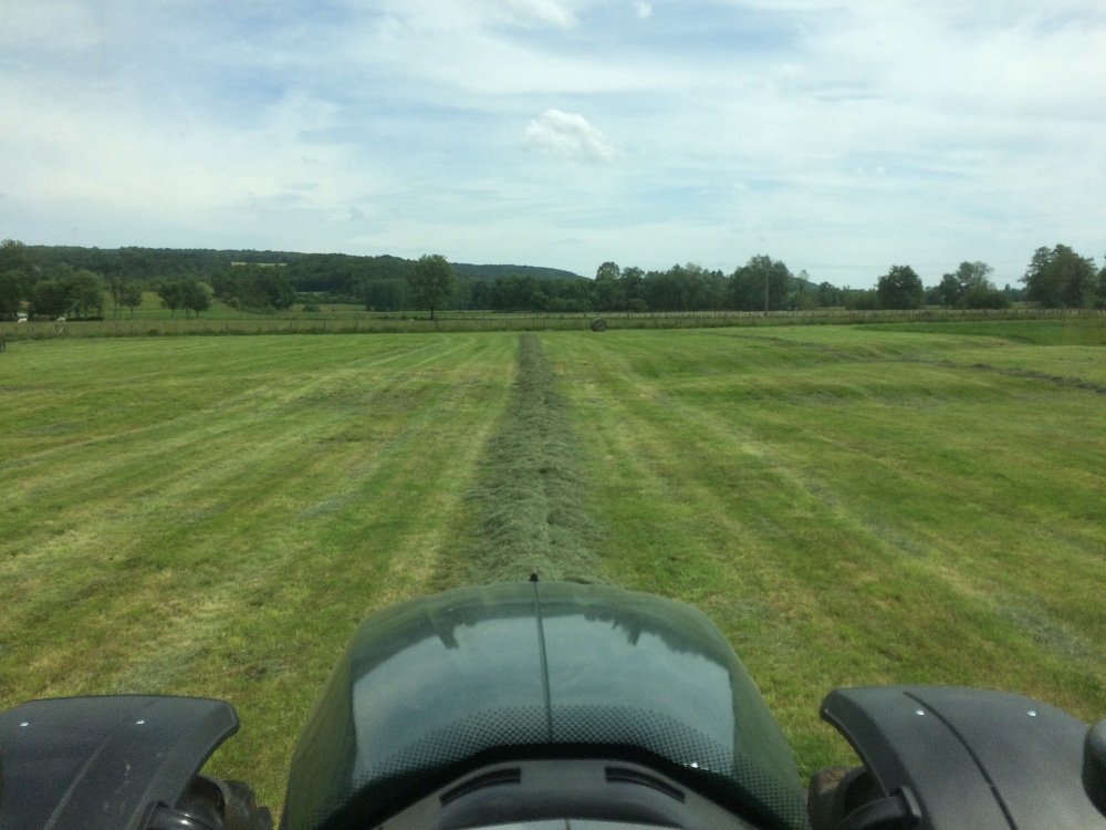 Cette semaine, c’est parti pour les foins ! On mis par terre la totalité des 26 ha qu’il nous restait à faire ! 😉