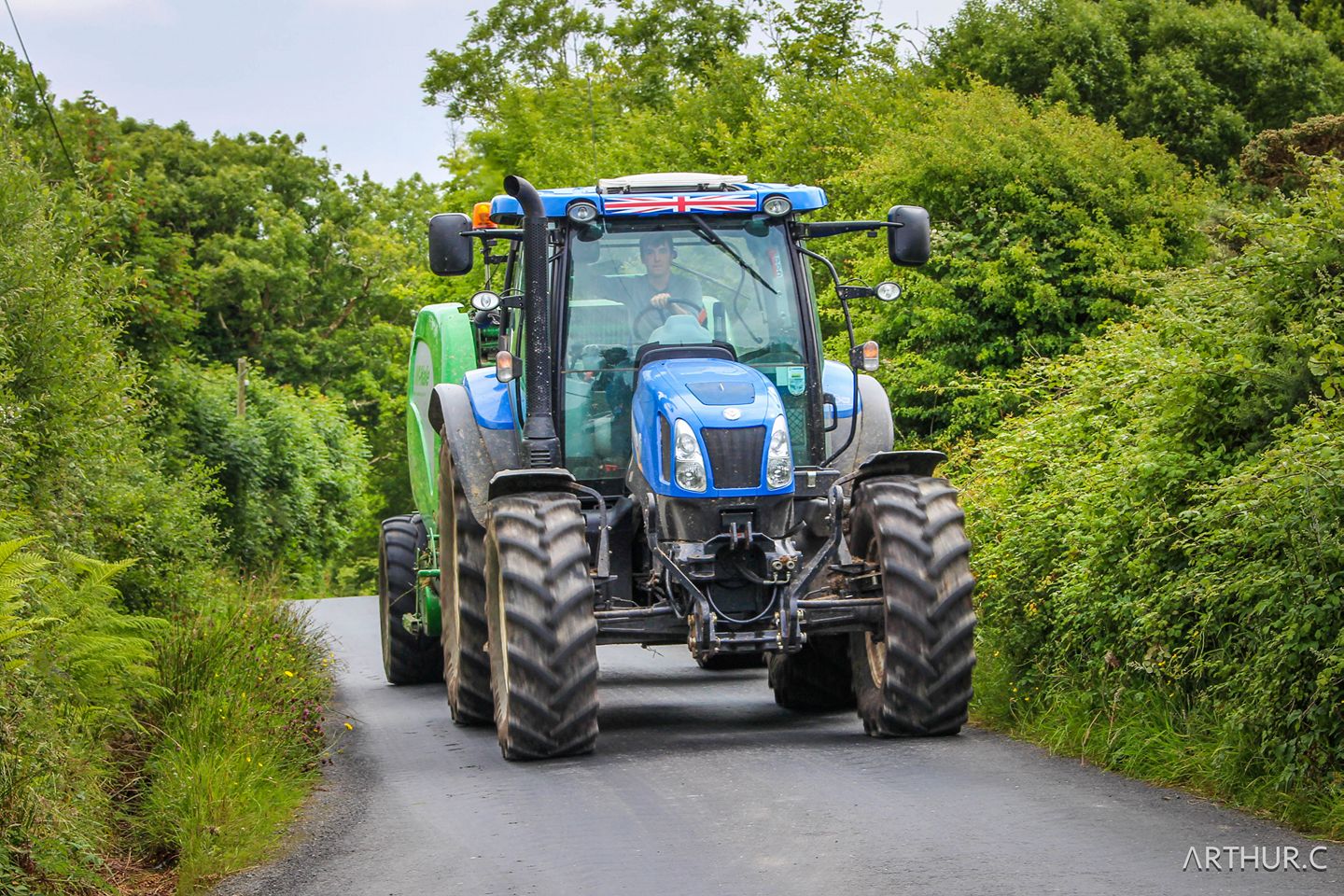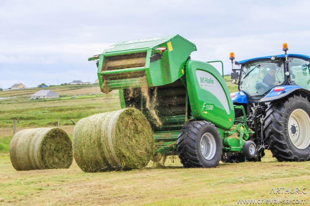 Pour débuter un ensemble plutôt banal rencontré sur les routes d'Irlande: un New Holland T6 et sa presse V660 McHale !