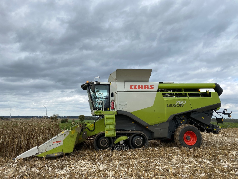 Retour en septembre avec du battage de tournesol, de maïs et de la pulvérisation. Grosse panne sur la 770 avec le flector qui a explosé, et abîmé la cloche et le volant moteur. Une 760 de prêt est arrivé de suite pour ne pas perdre de temps.