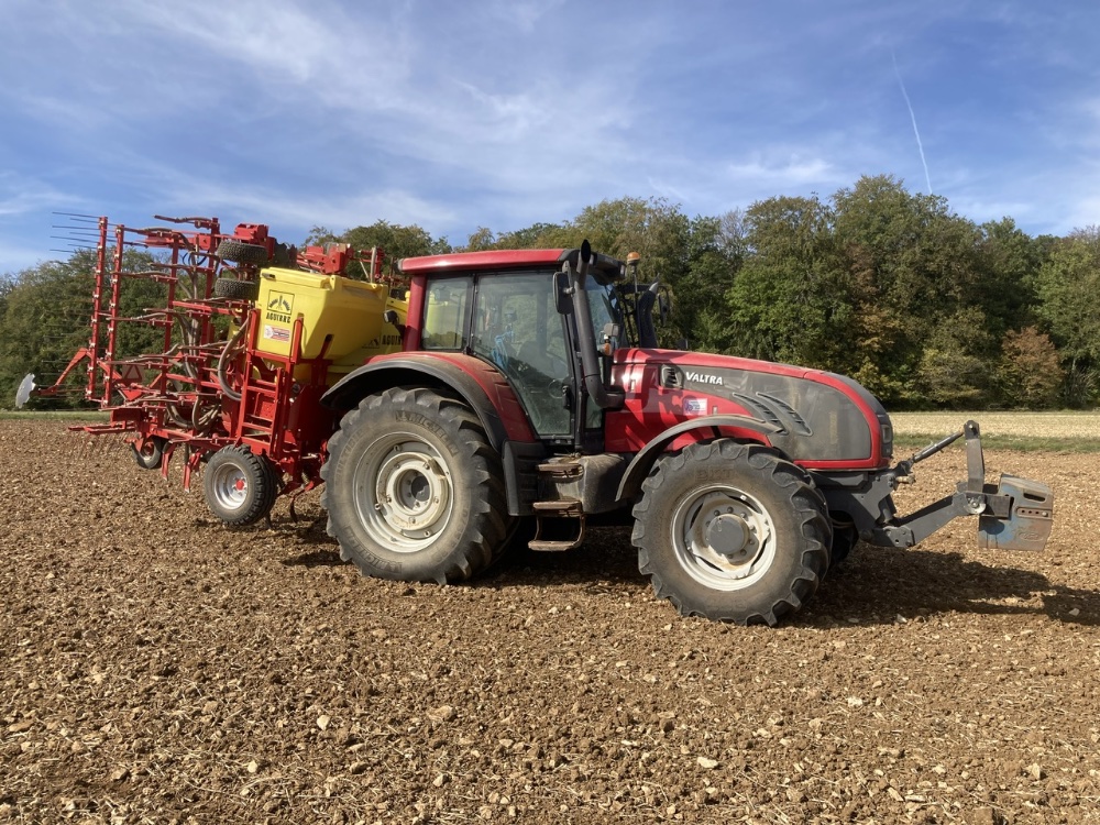 Ouh là 😅 la rotative avait été achetée d’occasion avec un semoir Kuhn mécanique, puis le semoir a été remplacé par l’Accord pneumatique neuf. Je pense que le semoir est de 2008 ou 2009. Depuis qu’on a l’Aguirre, il travaille bcp moins mais il doit déjà avoir un bon paquet d’ha dans les dents 😅