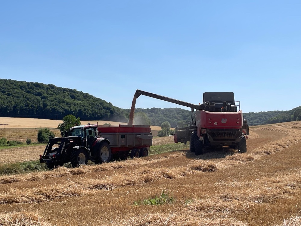 Rendement en grains exceptionnels cette année, ça fait partie des meilleures années que j’ai pu faire, toutes cultures confondues. Par contre, en paille c’est moyen, finalement avec 1150 bottes, j’ai pile la consommation d’une année. Heureusement j’ai toujours un stock de report d’année en année de 300 bottes mini pour être tranquille.