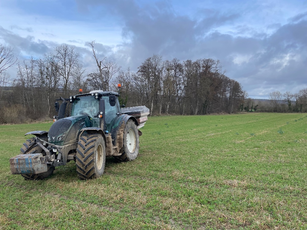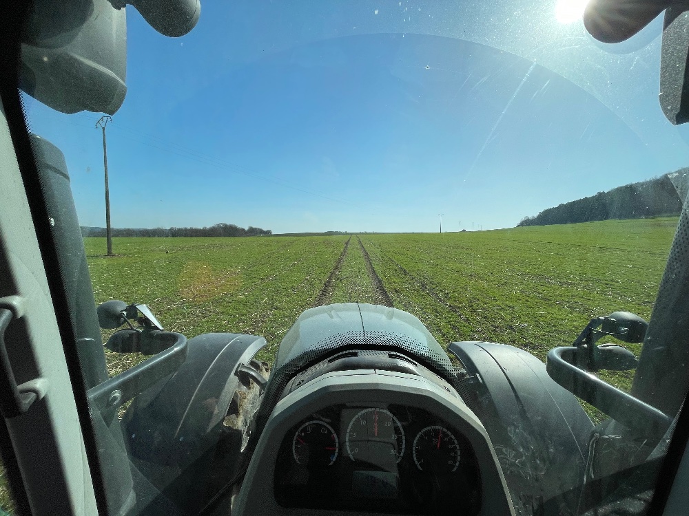 et retour du beau temps rime avec retour dans les champs ! 1ere salve de photos avec les apports d’azote en solution et potasse et soufre avec le centrifuge !