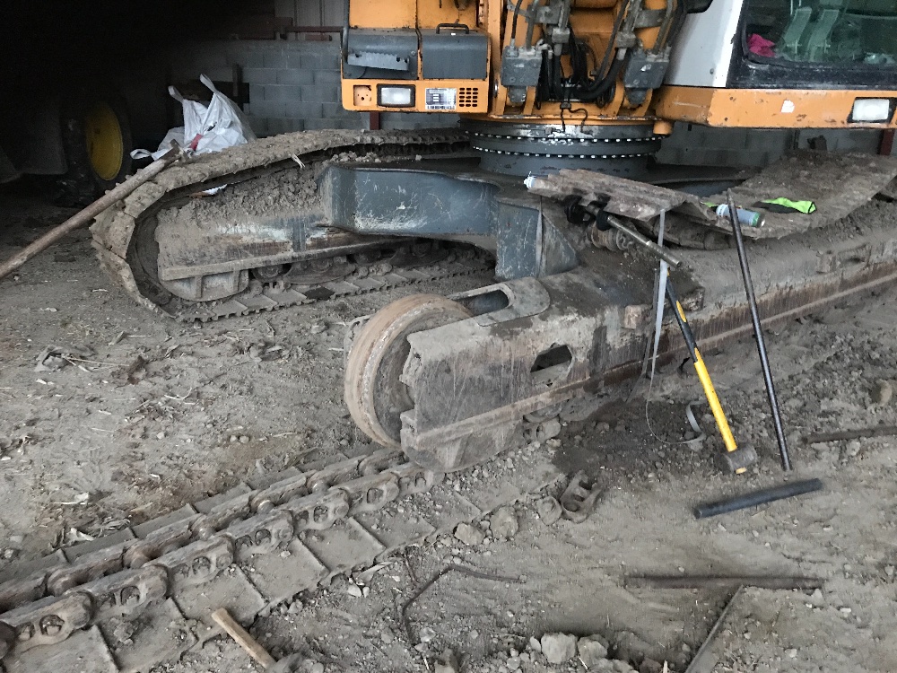 L'idéal est de vider complètement le vérin à graisse, enlever 3 tuiles, avoir une "pince" pour maintenir l'écartement entre maillons (toi qui bricole, 2 plats et une tige filletée pour la faire https://www.google.fr/search?biw=1088&b ... BE8j-aYsM: image pour le principe de la pince) un bon axe pour chasser (qui ne s'émousse pas ) et une bonne masse ( frapper de manière sèche afin de ne pas mater l'axe il vaut mieux 1 bon coup que 10 petits),