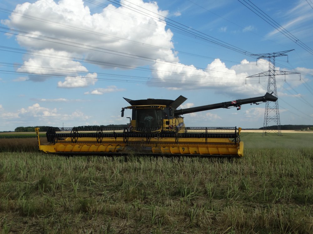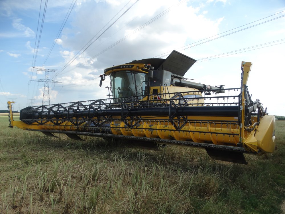 On repart sur la moisson de colza. Au programme du lourd... New Holland CR10.90 en 12m50, New Holland T7.315 Blue Power et tridem Legrand, New Holland T8.330 et tridem Maupu <cool>
