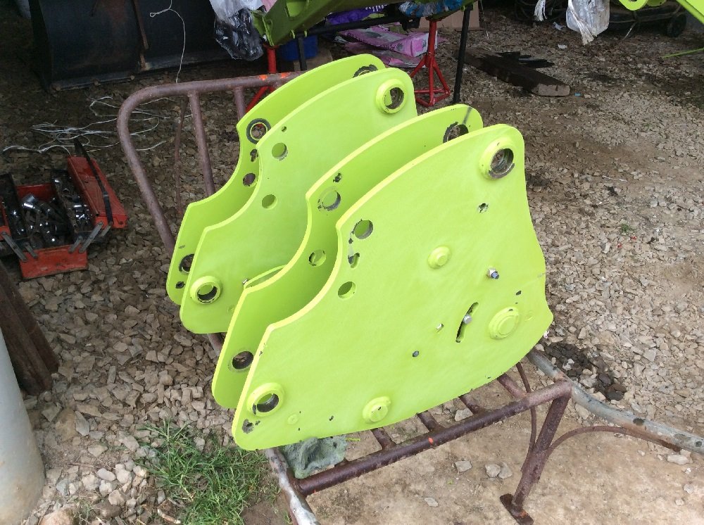 Nous avons tout d'abord démonté les vérins, j'ai décollé les autocollants et avons retiré la tringlerie de repère visuel godet, les platines de liaison bâti, carters, etc...