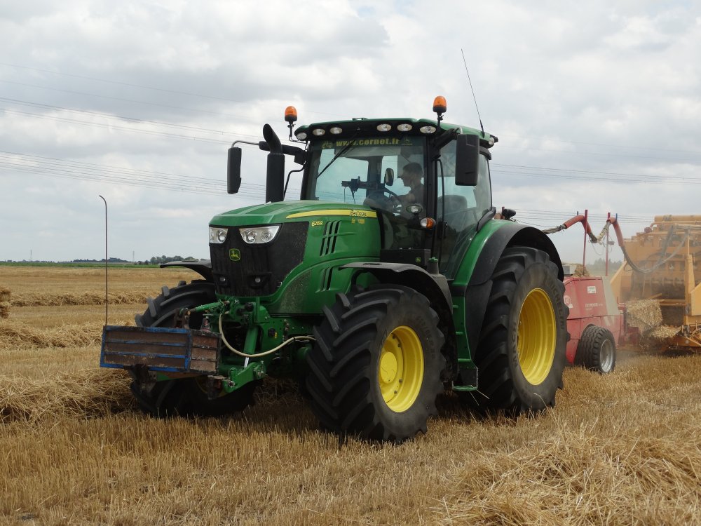 Un peu de pressage pour varié de la moisson. Pressage de petits ballots, 1 botte regroupe 14 ballots. On retrouve un John Deere 6215R avec une presse Lely Welger Ap 830 et un groupeur / compacteur Bélair <ok>