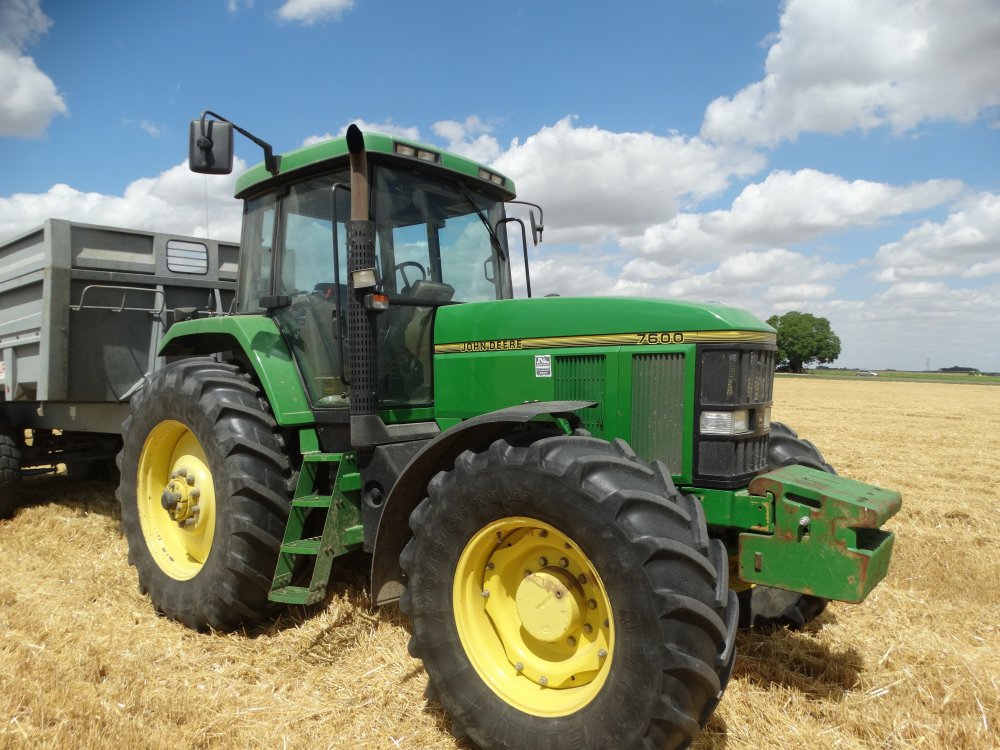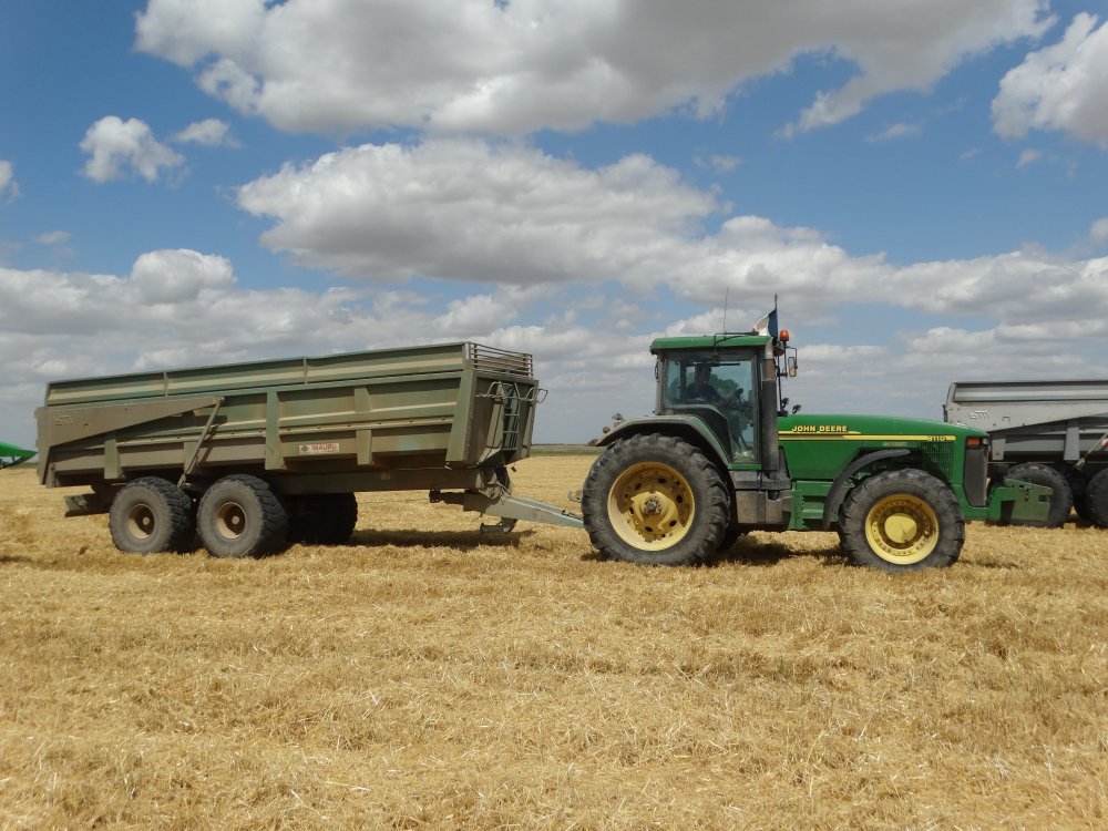 #341Petit chantier de moisson en début de soirée. On retrouve une New Holland CR9090 en 10m70 accompagné d'un John Deere 8310R et sa benne Ponthieux