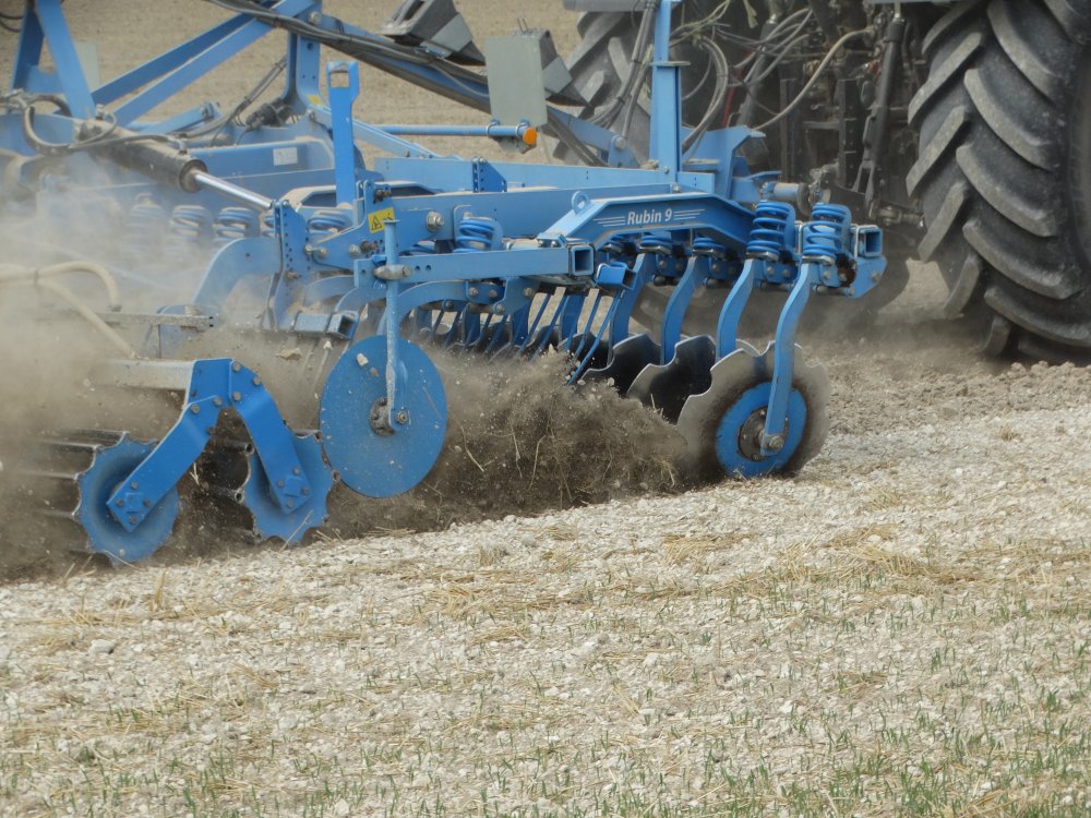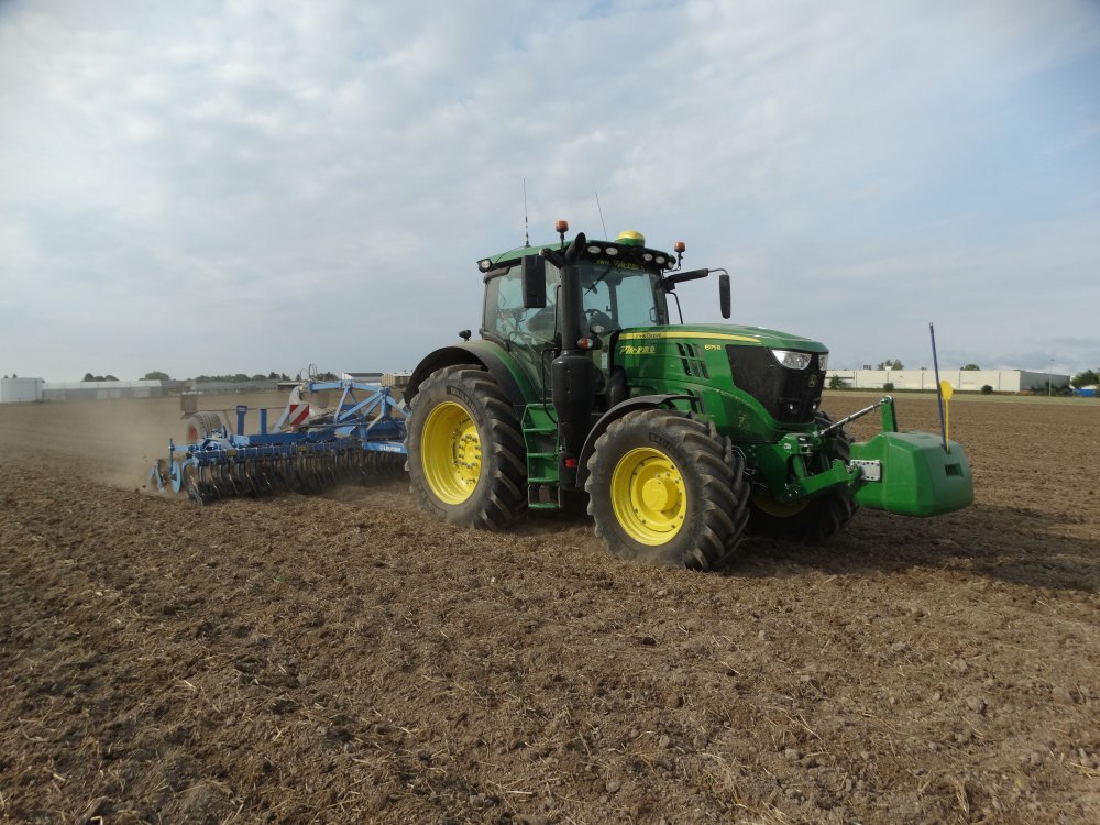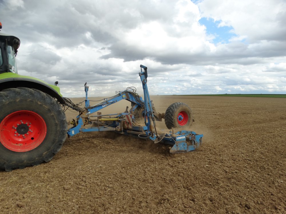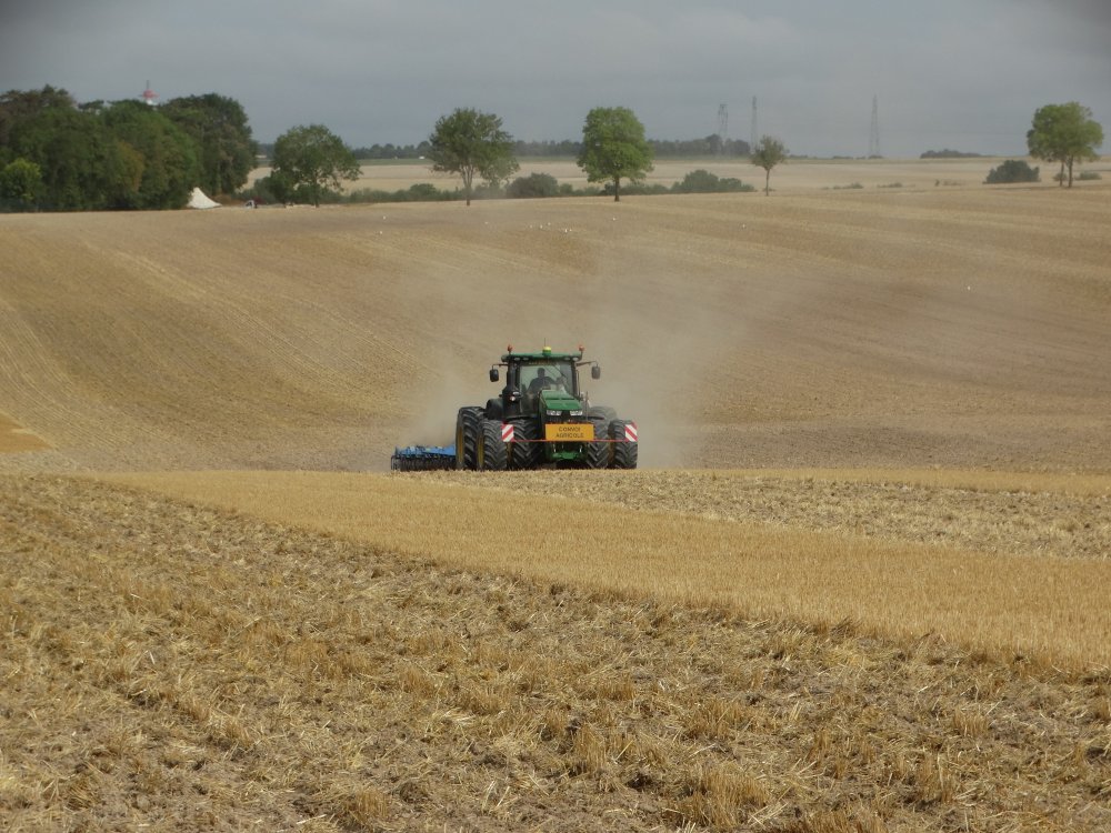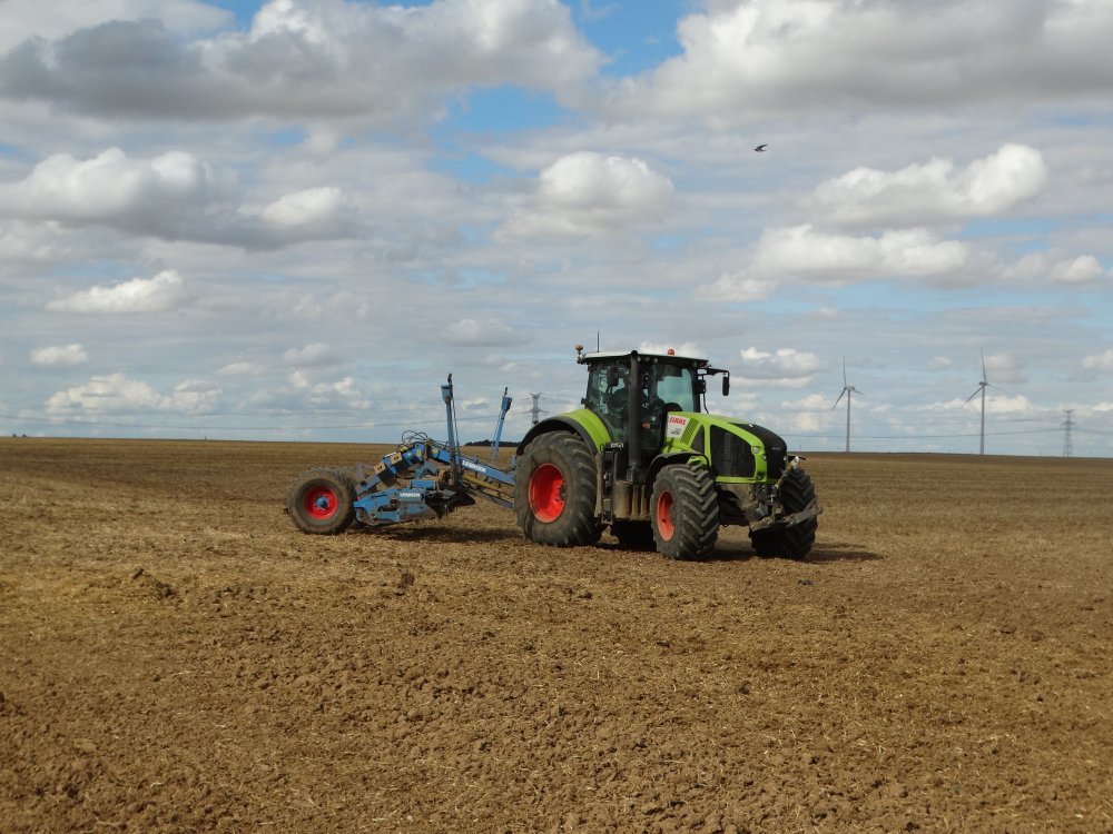 #391Préparation des terres en vu des semis de colza en Août dernier. Au programme Claas Axion 920 et rotative Lemken 6m semis portée